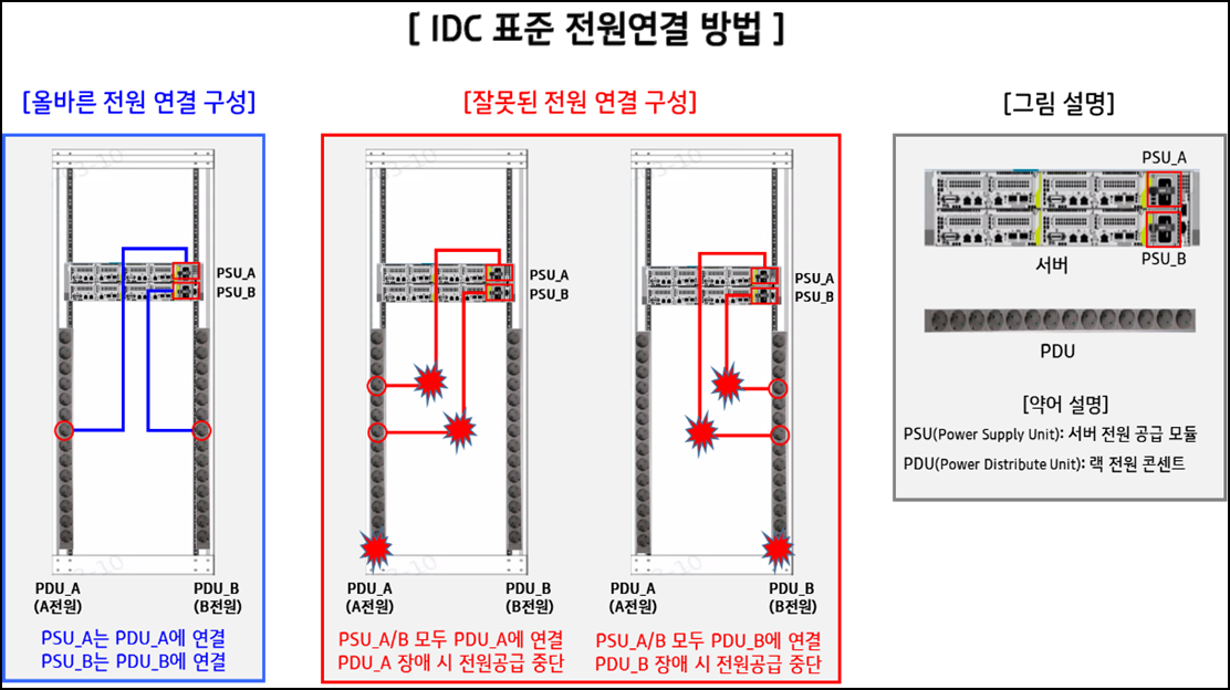 - 3층 서버실 내 부하 : 부하 절체 작업 중 전원 계통 이상 발생 시, 단일 전원 사용 중인 서버 유닛 공급 전원 중단 현상 발생 가능