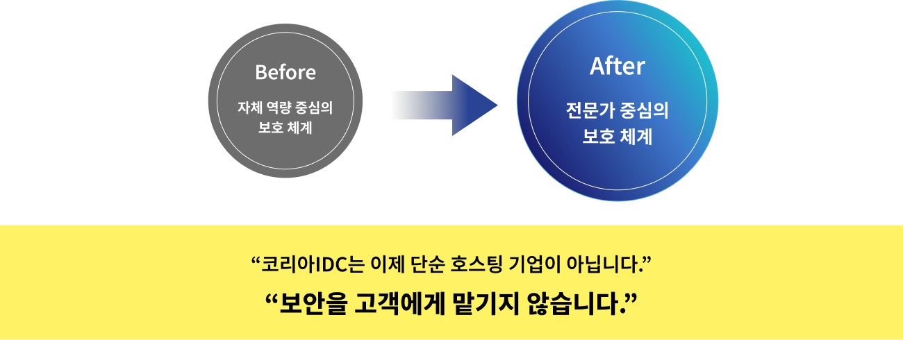 보안을 직접 운영할 여력이 없는 기업을 위해 호스팅 인프라 안에서 보안을 기본으로 제공